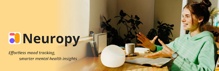 Neuropy uses AI to estimate mood via biometric and conversational data, enabling automatic mood tracking and insights through a mobile app and Home Hub.